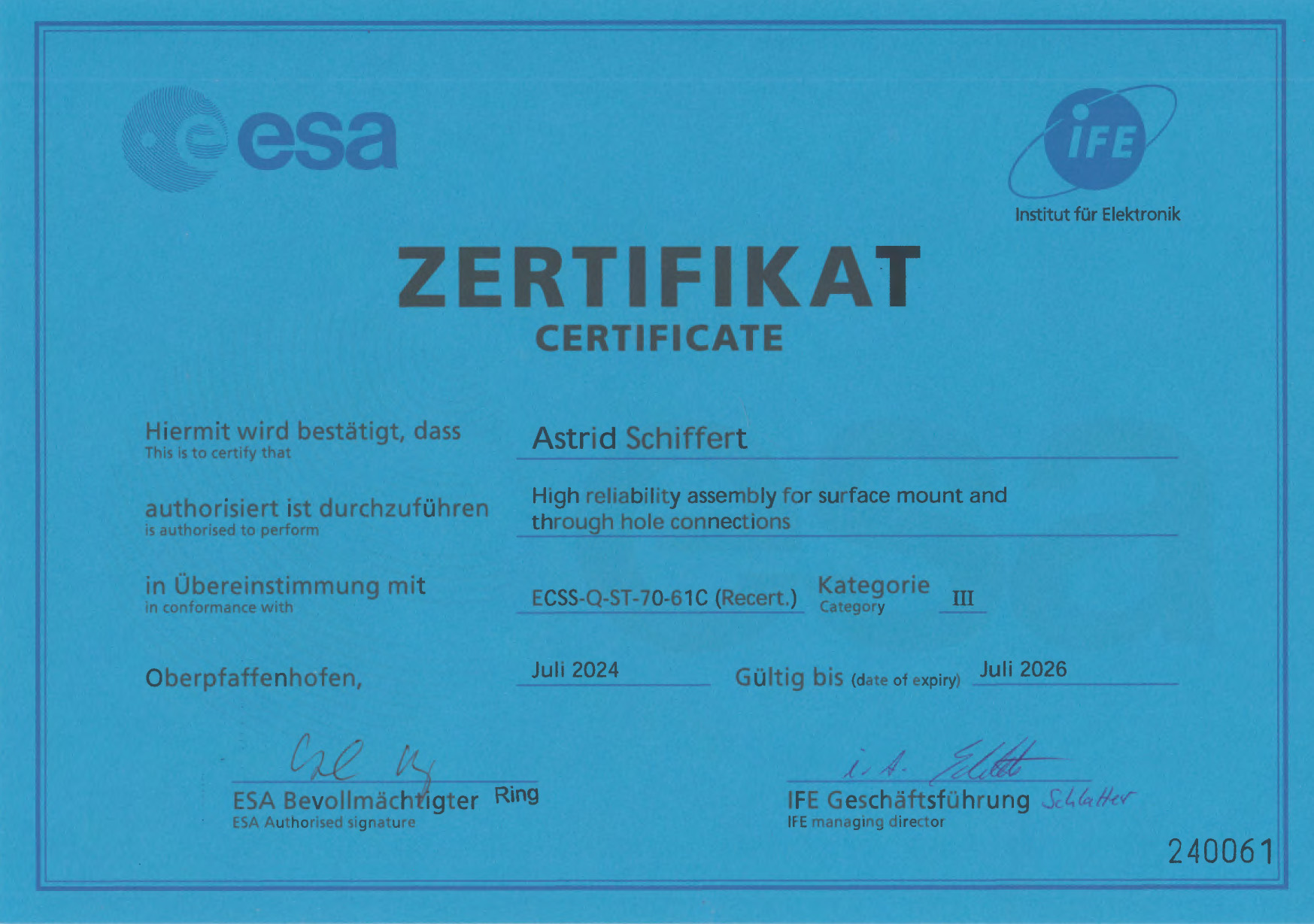 Verbände: Fachverband Elektronik-Design e.V. (FED), Deutsche Gesellschaft für Luft- und Raumfahrt (DGLR)